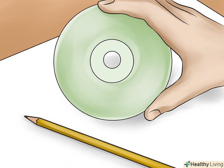 Знайдіть круглий предмет.ви можете використовувати будь-який плоский або циліндричний предмет, наприклад, пляшку, каструлю або компакт-диск. Якщо вам потрібно замінити циркуль з певним розчином круглим предметом, знайдіть предмет відповідного діаметру. У цьому методі кожна сторона рівностороннього трикутника буде дорівнює радіусу (половині діаметра) круглого предмета.- Якщо в якості круглого предмета ви використовуєте компакт-диск, то рівносторонній трикутник як би впишеться в правий верхній сегмент компакт-диска.