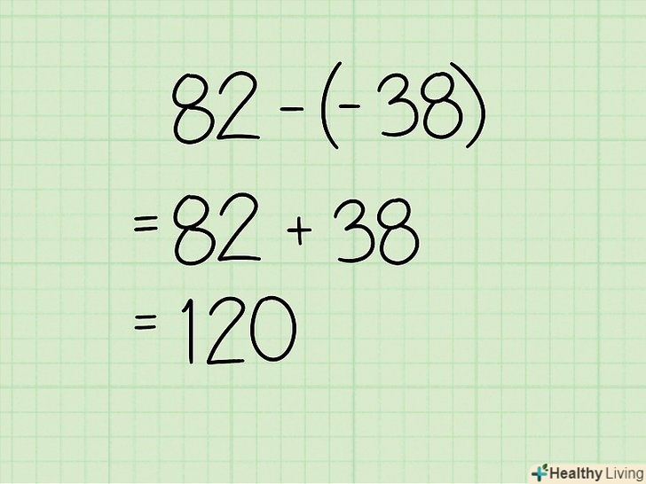 Відніміть суму, отриману в кроці 4, з суми, отриманої в кроці 3. у нашому прикладі: (82) - (-38) = 120.