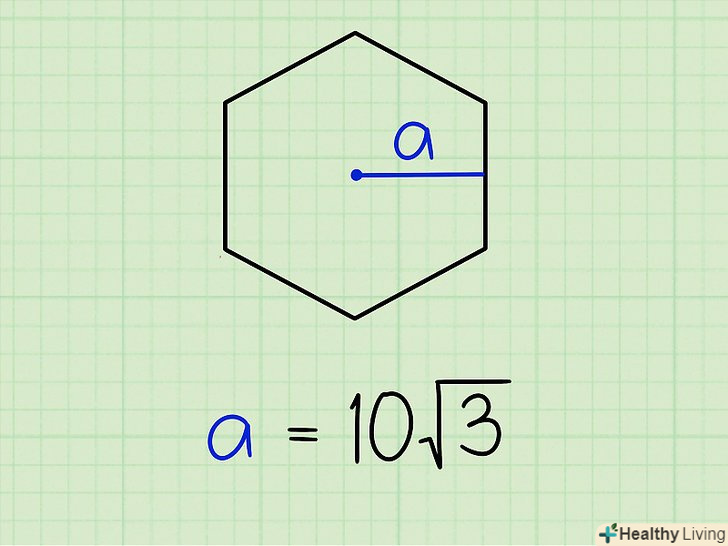 Знайдіть апофему.вона, як правило, дана в умові завдання. Наприклад, дано шестикутник, апофема якого дорівнює 10√3.