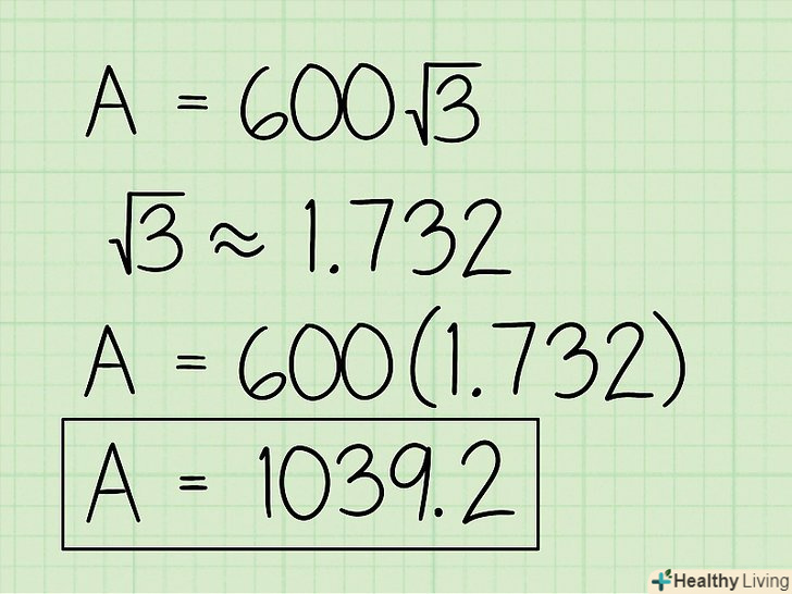 Спростіть відповідь.можливо, вам доведеться записати відповідь у вигляді десяткового дробу (тобто позбутися від кореня). За допомогою калькулятора знайдіть √3 і отримане число помножте на 600: √3 х 600 = 1039,2. Це ваша остаточна відповідь.