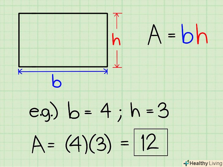 Знайдіть площу прямокутника . Формула: площа = довжина х ширина.- Якщо довжина прямокутника дорівнює 4, а ширина дорівнює 3, то його площа = 4 х 3 = 12.