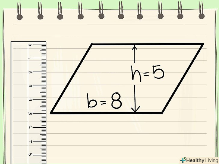 Знайдіть висоту паралелограма.Висота паралелограма-це перпендикулярна лінія, проведена з довільної точки верхньої сторони до нижньої сторони паралелограма.