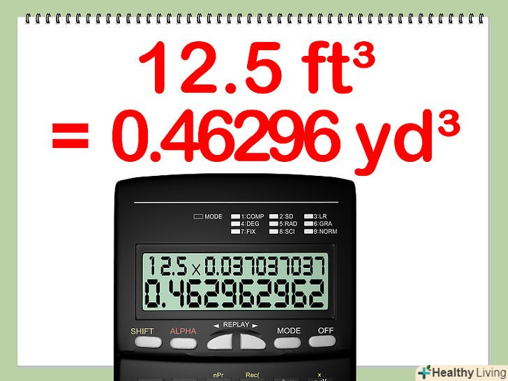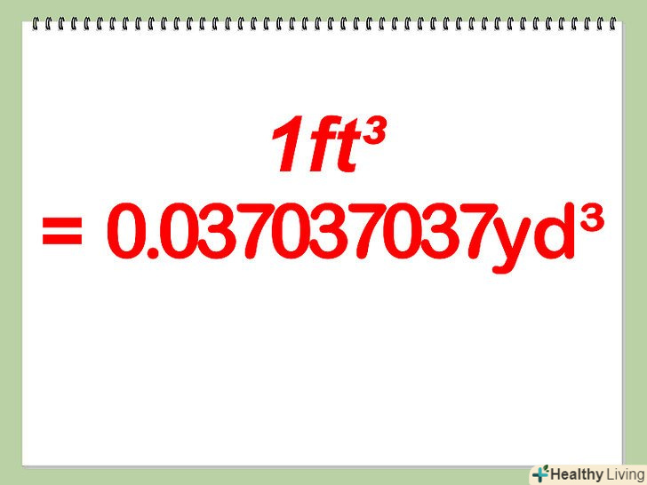 - Якщо ви використовуєте метричну систему, то кубічні ярди необхідно конвертувати в кубічні метри. Розділіть свою відповідь на 1,3080.[2]