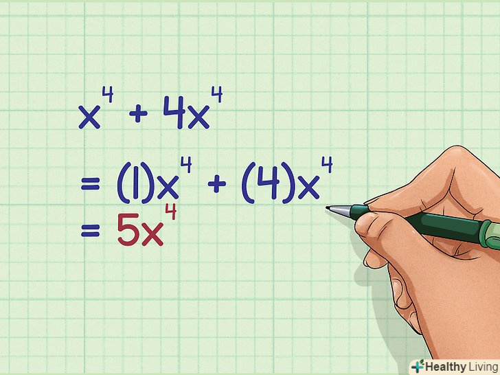 Складіть коефіцієнти при схожих членах.Пам'ятайте про те, що при відсутності коефіцієнта він дорівнює. Не складайте показники ступеня. Показник ступеня повинен залишитися колишнім.
