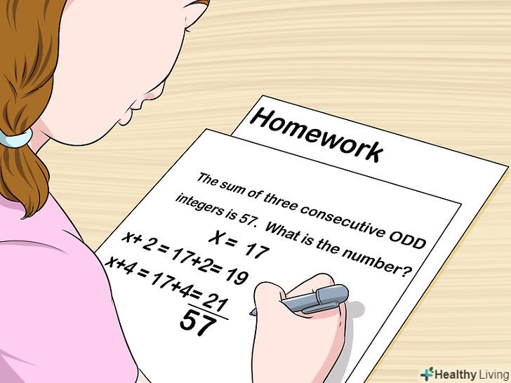 Виконуйте домашні завдання.як правило, вчитель задає додому найбільш показові і корисні приклади. Екзаменаційні завдання часто нагадують домашні завдання, тому, якщо ви будете їх регулярно виконувати, це допоможе вам підготуватися до іспиту.[11]- Якщо в кінці підручника наведені відповіді, не підглядайте завчасно, а використовуйте їх лише для того, щоб перевірити правильність свого рішення. Дивіться у відповіді лише після того, як вирішите завдання!