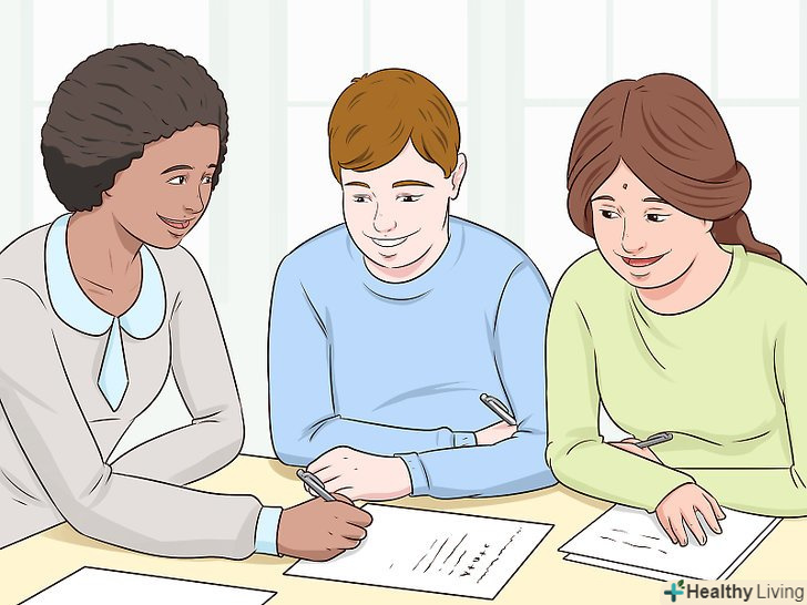Вчіться в групі.кожен сприймає ту чи іншу ідею по-своєму. Те, що вам дається з працею, може легко даватися однокласнику. Якщо ж з труднощами зіткнулася вся група, попросіть про допомогу вчителя.[3]- Можна збиратися 1-2 рази на тиждень, обговорювати навчання по телефону або через Інтернет.