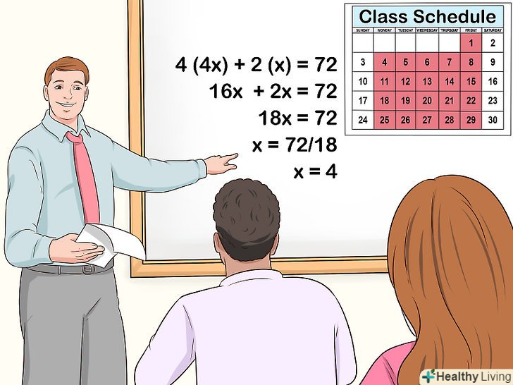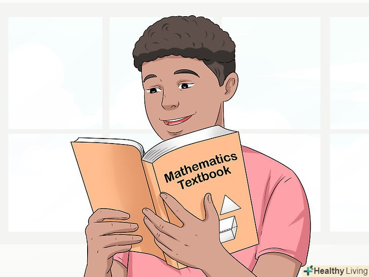 Читайте підручники.не забувайте не тільки розглядати приклади і виконувати завдання, а й читати навчальний матеріал. У підручниках часто наводяться докази і висновок формул, що дозволяє краще і повніше розуміти відповідну тему. Крім того, попереднє читання допомагає підготуватися до заняття і краще засвоїти матеріал.[9]- Будьте активні на заняттях, піднімайте руку і відповідайте на запитання — це дозволить краще засвоїти матеріал і отримати більш високу оцінку.