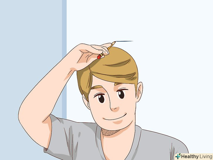 ВиміряйтеСвій зріст і округліть вимірювання до найближчого сантиметра.Встаньте спиною до стіни і зробіть олівцем невелику позначку на рівні верхівки. Візьміть рулетку і виміряйте відстань від підлоги до цієї позначки. Округліть отримане значення до найближчого сантиметра.[10]- Якщо ви не хочете залишати позначки на стіні, притисніть олівець до верхівки (гумкою до стіни) і відійдіть від стіни, утримуючи олівець на місці. Потім виміряйте відстань від олівця до підлоги.