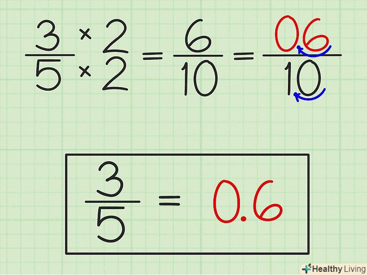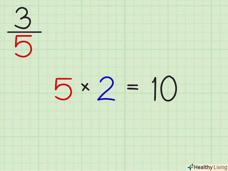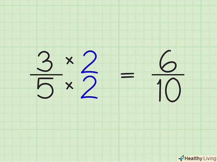 Помножте чисельник і знаменник дробу на знайдене число. ось як це робиться:[1]- 3/5 х 2/2 = 6/10