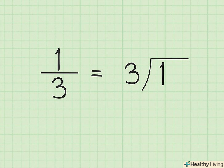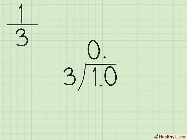Під дільником напишіть нуль і поставте після нього кому, так як результат ділення чисельника на знаменник звичайного дробу завжди менше 1. написавши під дільником " 0,", поставте біля діленого 0. У нашому прикладі біля 1 напишіть 0, тобто вийде число 10, яке ви будете ділити на 3.