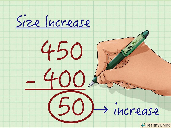 Вміння обчислювати відсотки допоможе вам в різних ситуаціях. Наприклад, якщо ви знаєте, що якась величина досягла величезного значення, обчисліть відсоток зміни величини-можливо, ви знайдете, що значення збільшилося тільки на 1%, тобто насправді зростання не такий вже значний. Щоб обчислити збільшення значення у відсотках, потрібно розділити різницю між початковим і кінцевим значеннями на початкове значення.