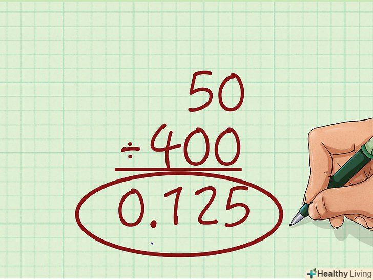 Отриманий результат розділіть на початкове значення. відсоток-це особливий вид дробу. Наприклад, якщо говорять 5% лікарів, це означає 5 з 100 лікарів. Якщо отримане результат розділити на початкове значення, ви запишете дріб, яка порівняє два значення.- У нашому прикладі:500 / 4000 = 0,125.