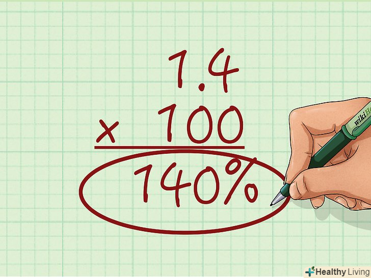 Отриманий результат помножте на 100. Ви отримаєте процентне співвідношення двох значень. Якщо значення збільшилося (а не зменшилося), відповідь повинна бути більше 100.- 1,4 x 100 =140 %. Це означає, що чисельність населення в 2015 році становила 140% від чисельності населення в 1990 році.