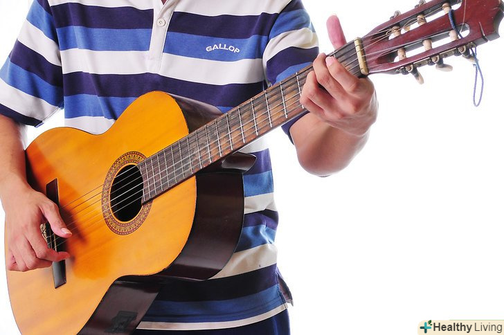 Пронумеруйте пальці і великий палець лівої руки: "5, 4, 3, 2, 1", починаючи з мізинця (5) і закінчуючи великим пальцем (1).- Уявіть собі, що форма руки Для" До, Фа, і сіль " завжди одна і та ж. ця форма (як формула) використовує пальці "5, 3 і 1". Решта 3-нотні мажорні акорди використовують ту ж форму аплікатури: