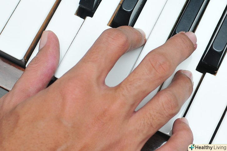 Прономеруйте пальці і великий палець правої руки "1, 2, 3, 4, 5", починаючи з великого пальця (1) і закінчуючи мізинцем(5).- Зіграйте ті ж акорди правою рукоютаку ж форму за допомогою пальців знову ж пронумерованих зліва направо "від 1 до 5", але зараз ви починаєте з великого пальця (1) до правого мізинця (5) );[3] і хоча руки виглядають дзеркально-просто ігноруйте зміну пальців, а так це все та ж форма штатив (Примітка: обидві руки зліва направо "5, 4, 3, 2, 1 і 1, 2, 3, 4, 5 ")