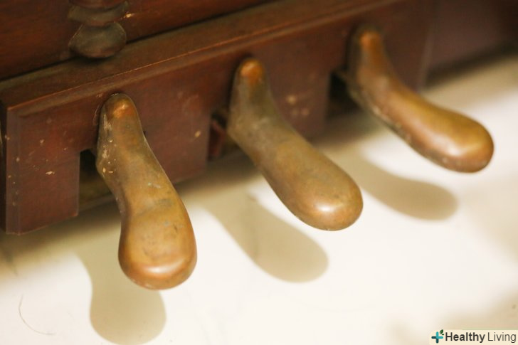 Використовуйте педалі, коли вказано.граючи на фортепіано, а не на синтезаторі, в ногах можна побачити педалі.[13] ліву педаль називають» піано "педаллю, середню педаль називають" модератором «і праву педаль називають» педаллю утримання «або»форте". Коли потрібно використовувати праву педаль-позначено на нотах:- Утримуючу педаль треба натискати, коли слово «Ped."написано нижче ноти, і відпускати, коли ви бачите зірочку. Замість цього можливе використання горизонтальних, вертикальних, або похилих ліній разом. Горизонтальна лінія означає, що педаль потрібно натискати, Похила — коротко відпустити і вертикальна — відпустити педаль.