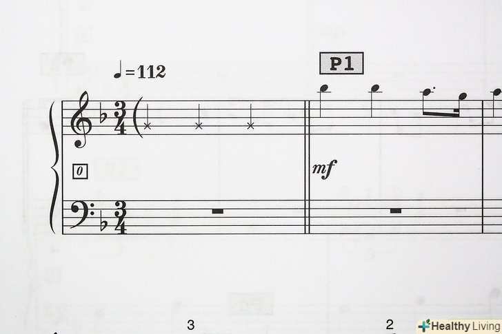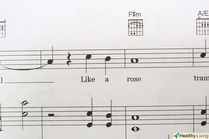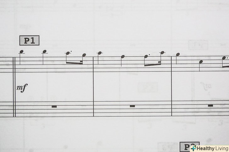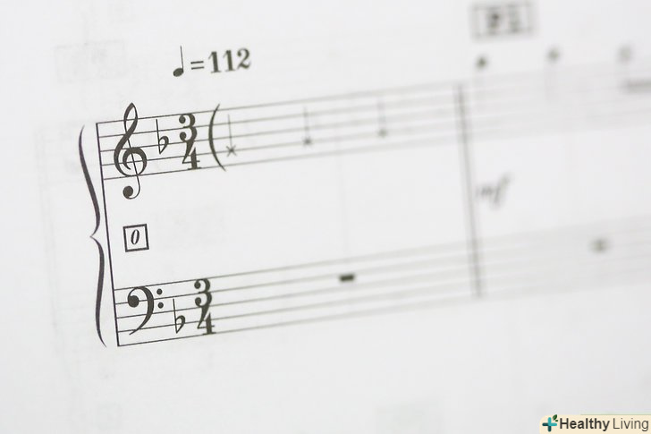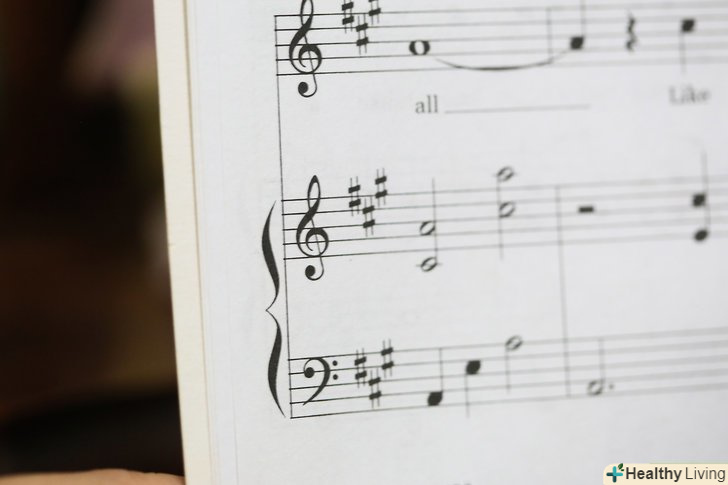 Знайте, як читати нотні рядки. читання музики подібно читання слів.[14] Думайте про нотному стані як про пропозицію, а про нотах — як про літери. З'єднайте знання нотного стану зі знанням нот і почніть грати музику, яку ви бачите на сторінці. Спочатку буде важко, але з досвідом буде все легше.