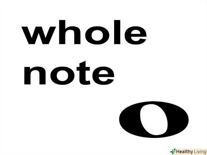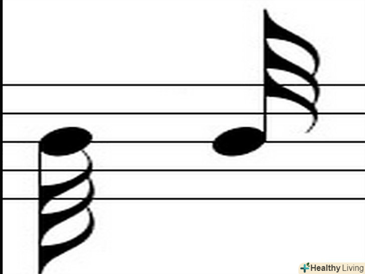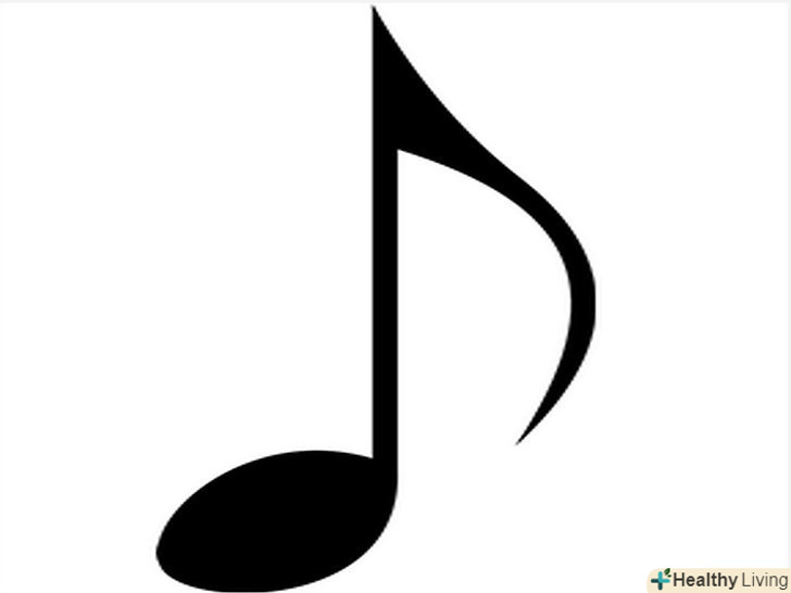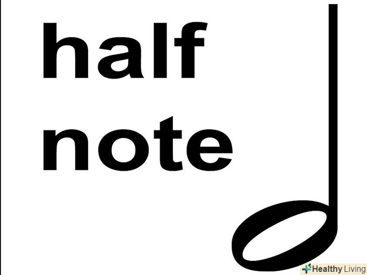 Навчіться розпізнавати частини ноти. Зображення ноти складається з декількох частин. Як лінії і кола, які складають мову письмової російської мови, лінії і кола в зображенні нот показують, як нота функціонує в музичному реченні. Зрозумійте частини нот, щоб зрозуміти, як вони звучать.[8]- Головка-кругла частина ноти. Вона може бути схожою на відкритий овал або заповнений овал. Місце розташування головки вказує на висоту ноти.