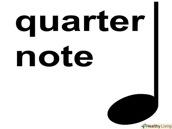 - Четвертна нота: четвертна нота позначена закритою головкою зі штилем. Вони позначені четвіркою в нижній частині розміру.