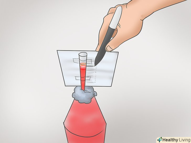 Перевірте роботу термометра в інших середовищах.випробуйте його в середовищах з різною температурою. Простежте, як рівень вимірювальної рідини в трубці падає при низьких температурах і підвищується при високих.- Відзначте, наскільки змінюється рівень рідини в трубці термометра при приміщенні його в холодну або гарячу середу.