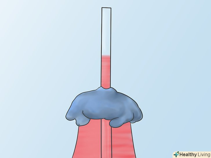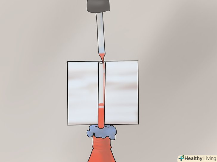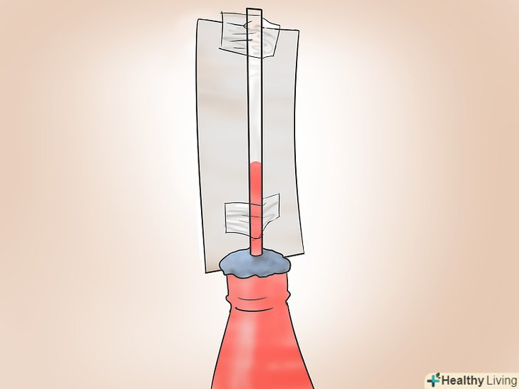 Долийте вимірювальний розчин в трубку.обережно додайте кілька крапель розчину зверху трубки за допомогою піпетки. Досягніть того, щоб рідина піднімалася в трубці на висоту 5 см (2 дюйма) над шийкою пляшки.- Додавши в трубку кілька крапель розчину, ви полегшите спостереження за його рівнем, коли він буде змінюватися при підвищенні або зниженні температури.