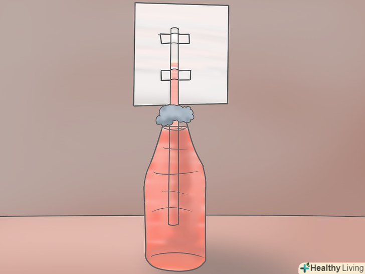 Огляньте виготовлений термометр.зібравши прилад, перевірте його кілька разів перед тим, як використовувати для вимірювань, щоб переконатися, що ви не допустили помилок при його виготовленні.- Обмацайте пляшку. Переконайтеся, що з неї не витікає рідина.