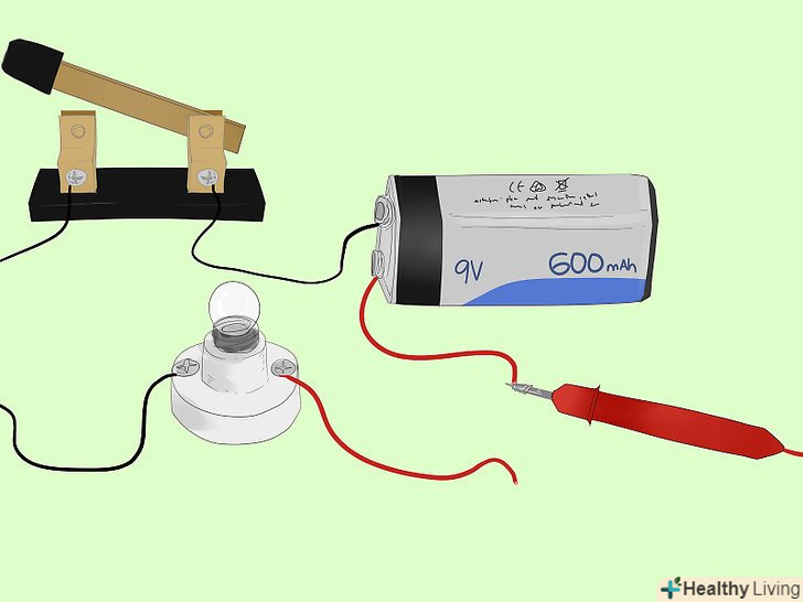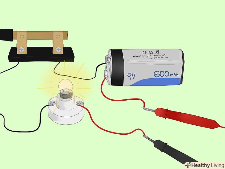 Підключіть чорний провід мультиметра до залишився вільному кінця і замкніть ланцюг. знайдіть позитивний провід, який йде від перевіряється вами ланцюга, і підключіть його до чорного щупу мультиметра. Якщо ви від'єднали дроти і розірвали з'єднання з джерелом живлення, в ланцюзі виникне електричний струм відразу ж після того, як ви доторкнетеся чорним щупом мультиметра до проводу. Якщо ви відключили живлення за допомогою вимикача, включіть його знову.[11]- Це буде другий кінець дроту, який ви відрізали або від'єднали від джерела живлення.