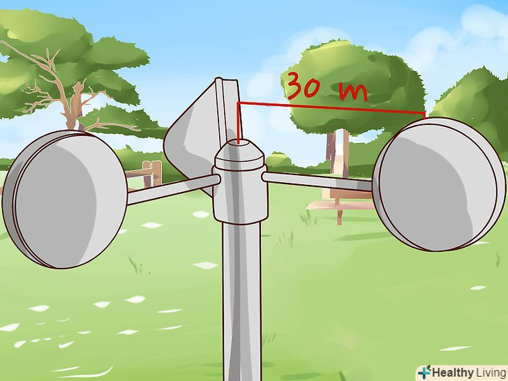 Розташуйте анемометр там, де дме вітер.вітер повинен бути досить сильним, щоб обертати вісь анемометра, але при цьому не здувати і не перекидати його. Можливо, варто прикріпити анемометр до землі або жорсткого стрижня, так щоб олівець був розташований вертикально.