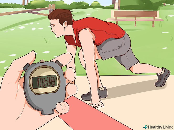 Підготуйтеся до експерименту.щоб визначити швидкість бігуна, необхідно виміряти час, за який він подолає намічену відстань. Попросіть бігуна чекати, поки ви не скажете: "Марш!"- це дозволить вам точно зафіксувати час за допомогою секундоміра. Виставте секундомір на нуль і попросіть бігуна зайняти стартову позицію.- Час можна виміряти також за допомогою звичайних годин, хоча результат вимірювань буде менш точним.