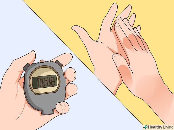 Хлопніть в долоні 11 разів і зафіксуйте цей час за допомогою секундоміра.попросіть свого друга запустити секундомір в момент першого бавовни і зупинити одночасно з останнім. Якщо ви грюкнете 11 разів, то звук встигне 10 разів дійти до стіни, відбитися від неї і повернутися назад у вигляді луни. Таким чином, звук 10 разів пройде відстань 100 метрів.[4]- Крім того, 11 ударів дадуть вашому другові достатньо часу для того, щоб точно запустити і зупинити секундомір.