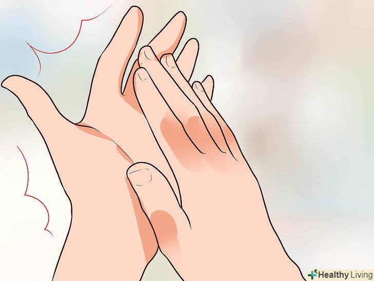 Плескайте в долоні одночасно зі звуком луни від стіни.Встаньте на вимірюваній відстані від стіни і почніть повільно плескати в долоні. При цьому ви почуєте відлуння. Прискорюйтеся або сповільнюйтеся і підберіть такий ритм, щоб кожен наступний бавовна збігався зі звуком луни від попереднього бавовни.[3]- Коли ви досягнете повної синхронності, то будете чути лише свої хлопки і перестанете чути звук луни.