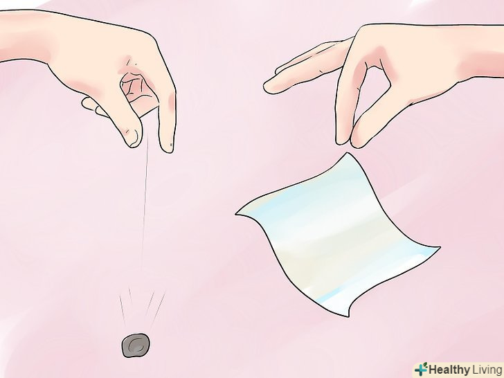 Збільште площу поверхні тіла.як зазначалося вище, при русі твердих тіл в рідинах і газах також виникає сила тертя. Сила, що перешкоджає руху тіл в рідинах і газах, називається лобовим опором (іноді його називають опором повітря або опором води). Лобове опір більше при збільшенні площі поверхні тіла, яка спрямована перпендикулярно напрямку руху тіла крізь рідину або газ.- Наприклад, візьміть дробинку масою 1 г і аркуш паперу тієї ж маси і одночасно відпустіть їх. Дробинка відразу ж впаде на підлогу, а аркуш паперу буде повільно опускатися вниз. Тут якраз видно принцип лобового опору-площа поверхні паперу набагато більше, ніж у дробинки, тому опір повітря більше і папір падає на підлогу повільніше.