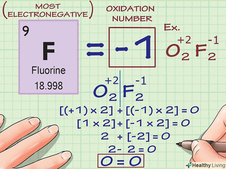 Фторзавжди має ступінь окислення -1.як вже було відзначено, ступінь окислення деяких елементів (іони металів, атоми кисню в перекисах і так далі) може змінюватися в залежності від ряду факторів. Ступінь окислення фтору, однак, незмінно становить -1. Це пояснюється тим, що даний елемент має найбільшу електронегативність — інакше кажучи, атоми фтору найменш охоче розлучаються з власними електронами і найбільш активно притягують чужі електрони. Таким чином, їх заряд залишається незмінним.