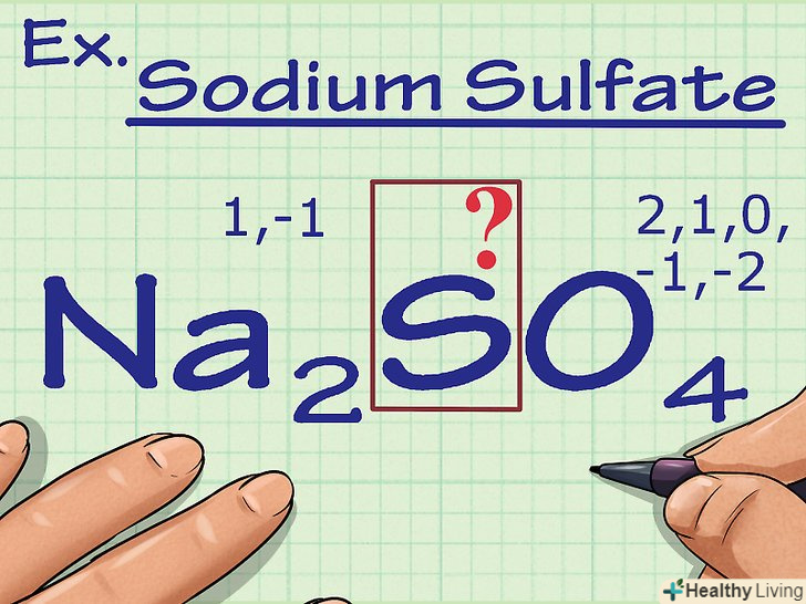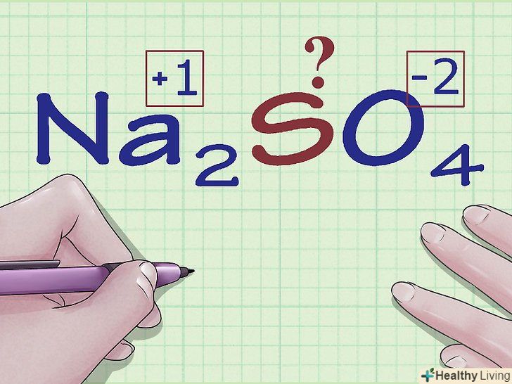Знайдіть ступеня окислення інших елементів, що входять в з'єднання. за допомогою описаних вище правил визначте ступеня окислення інших атомів з'єднання. Не забувайте про винятки з правил у випадку атомів O, H і так далі.- Для Na2SO4, користуючись нашими правилами, ми знаходимо, що заряд (а значить і ступінь окислення) іона Na дорівнює +1, а для кожного з атомів кисню він становить -2.
