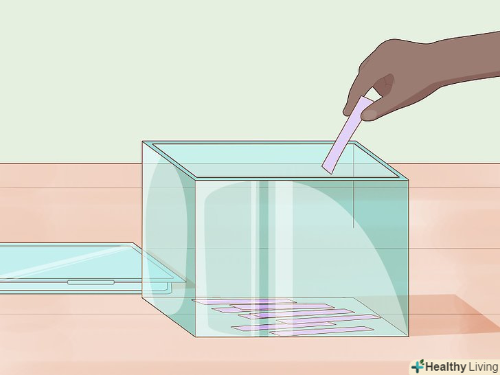 Зберігайте смужки в прохолодному сухому місці.необхідно тримати смужки в герметично закритій ємності до тих пір, поки ви не зберетеся використовувати їх. Таким чином ви захистите їх від забруднюючих речовин з навколишнього середовища, наприклад парів кислот або лугів. Крім того, краще не залишати смужки під прямим сонячним світлом, інакше з часом вони можуть вицвісти.[10]