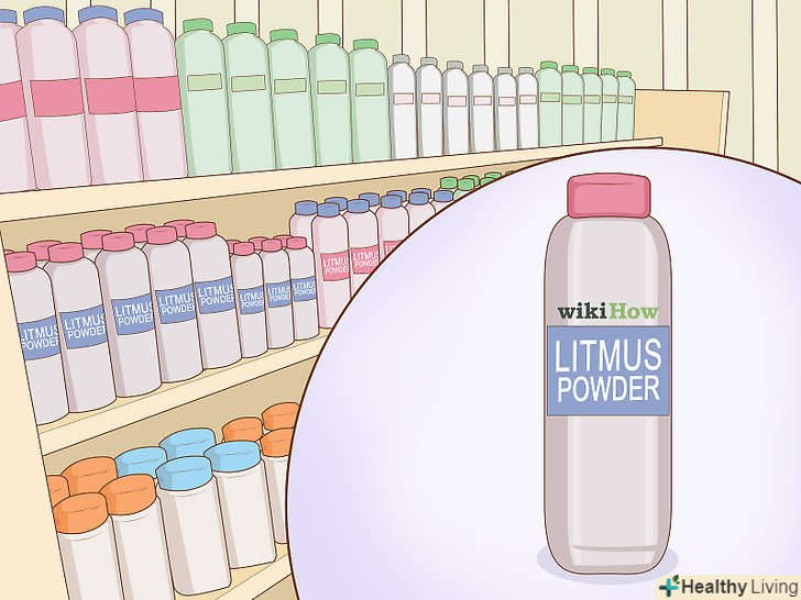 Дістаньте сухий лакмусовий порошок. Лакмус являє собою з'єднання, яке отримують з лишайників-грибів, які утворюють симбіотичні відносини з водоростями і/або ціанобактеріями, здатними до фотосинтезу. Лакмусовий порошок можна придбати в магазині хімічних реактивів або замовити через Інтернет.- Можна отримати лакмусовий порошок і самостійно, якщо ви досвідчений хімік. Однак це досить складний процес, який включає додавання до подрібненого лишайника декількох сполук, таких як вапно і поташ, і ферментацію протягом декількох тижнів.[11]