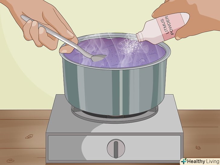 Розчиніть лакмус у воді.як слід перемішайте воду і розігрійте її, якщо порошок погано розчиняється. Необхідно повністю розчинити лакмусовий порошок. В результаті у вас вийде фіолетово-синій розчин.[12]