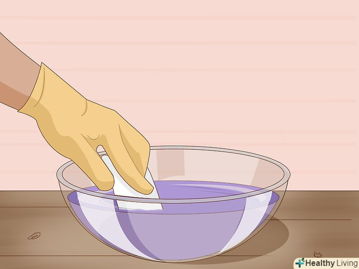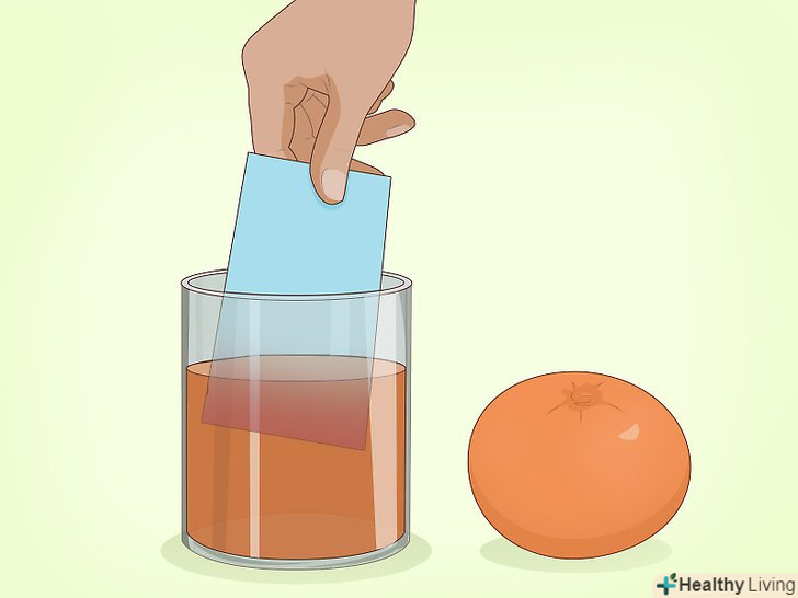Занурте папір в індикаторний розчин.опустіть папір до самого дна. Простежте, щоб розчин покрив всі кути і краї паперу. На даному етапі вам знадобляться рукавички.[8]