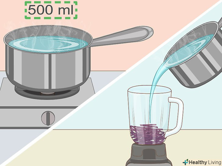 Додайте до капусти окріп.можна закип'ятити воду на звичайній або в мікрохвильовій плиті-вам знадобиться близько 500 мілілітрів. Залийте окріп прямо в блендер з капустою. Це допоможе витягти з капусти потрібні речовини.[2]