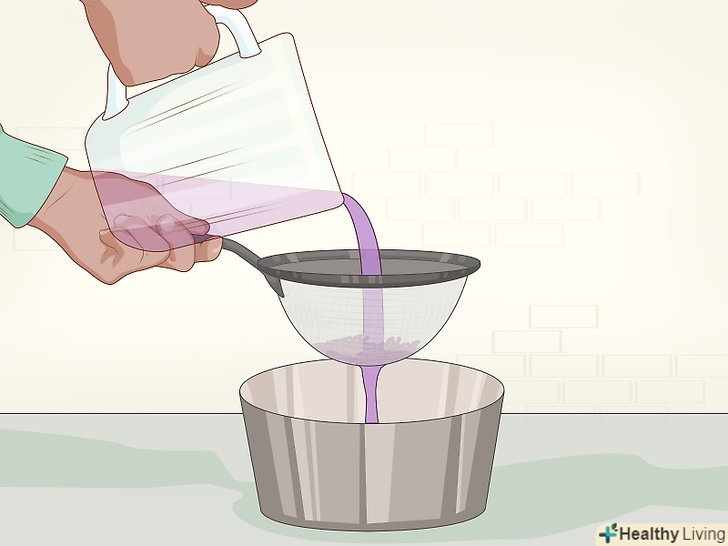 Процідіть суміш через сито.необхідно очистити індикаторний розчин (забарвлену воду) від шматочків капусти. Замість сита можна використовувати фільтрувальний папір, однак це займе більше часу. Після того як ви процідіть індикаторний розчин, що залишилися шматочки капусти можна викинути.[4]
