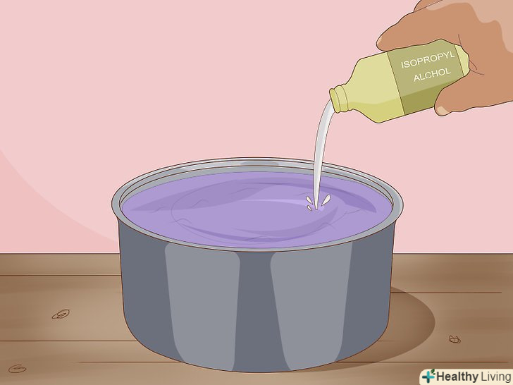 Додайте в індикаторний розчин ізопропіловий спирт.налийте приблизно 50 мілілітрів ізопропілового спирту, щоб захистити розчин від росту бактерій. В результаті колір розчину може почати змінюватися. Якщо це станеться, додайте оцет до тих пір, поки розчин не відновить свій первісний темно-фіолетовий колір.[5]- Якщо у вас немає ізопропілового спирту, можна замінити його етиловим.[6]