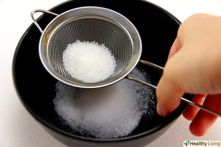 Оцініть різний розмір крупинок солі і цукру.на перший погляд кухонна сіль і цукровий пісок виглядають однаково, в тому числі і за розміром частинок. Однак, якщо вони розрізняються за середнім розміром хоча б в два рази, їх можна спробувати розділити механічним шляхом.- Зазвичай середній розмір крупинок столової солі становить 100 мікрометрів, або 0,1 міліметра.[1] врахуйте, що інші види харчової солі, наприклад середньозерниста сіль або сіль для консервування, можуть сильно відрізнятися за середнім розміром частинок.