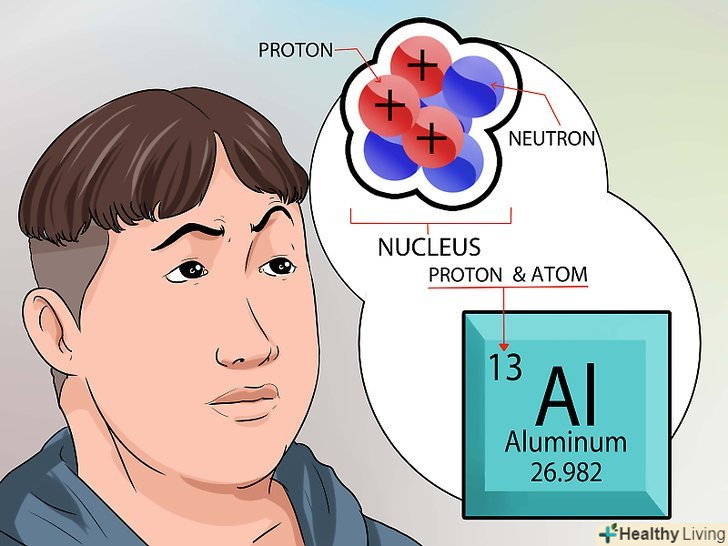 З'ясуйте, як влаштовано ядро.нейтрони в ядрі володіють нейтральним зарядом. У протонів позитивний заряд. Атомне число елемента дорівнює кількості протонів в ядрі.[6].- Немає необхідності вважати кількість протонів в ядрі. Це число вказується в періодичній таблиці хімічних елементів для кожного елемента.