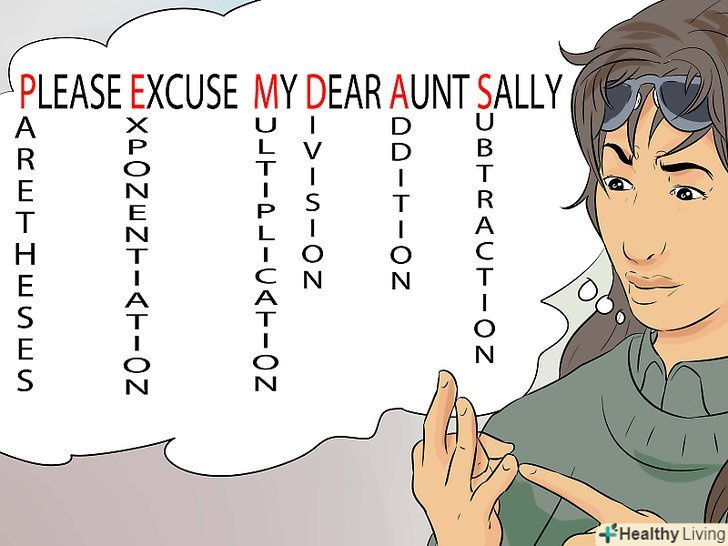 Знайте послідовність основних обчислень.у хімії іноді потрібні дуже точні розрахунки, але часто досить базових знань математики. Важливо розуміти, в якій послідовності здійснюються розрахунки.[19]- Спочатку робляться розрахунки в дужках, потім обчислення в ступенях, потім множення або ділення і в кінці - додавання або віднімання.