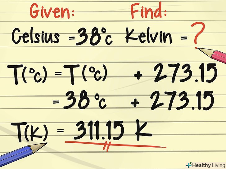 - Зазвичай температуру хімічних реакцій вимірюють в градусах по Кельвіну. Потренуйтеся переводити градуси за Цельсієм в градуси за Фаренгейтом або Кельвіном.