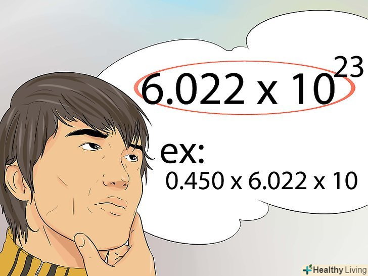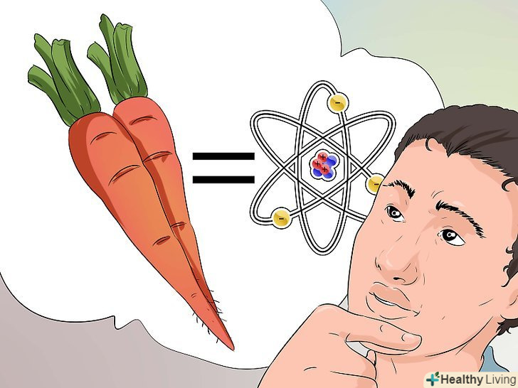 Подумайте про морквину.якщо вам складно зрозуміти, як використовувати число Авогадро, спробуйте рахувати моркву, а не атоми, молекули або частинки. Скільки морквин міститься в дюжині? Ми знаємо, що дюжина-це 12, значить, в одній дюжині 12 морквин.- Тепер відповімо на питання, скільки морквин міститься в молі. Замість того щоб помножити на 12, ми помножимо на число Авогадро. У молі 6.022 x 1023 морквин.