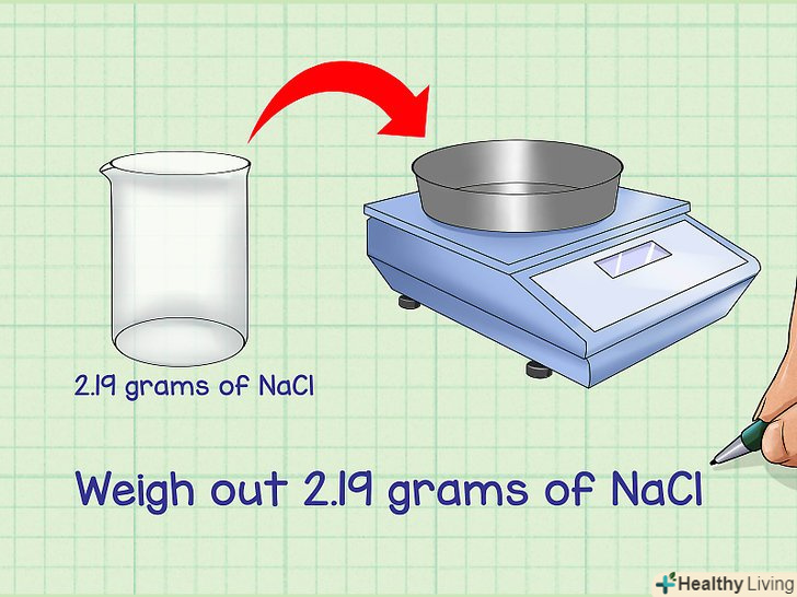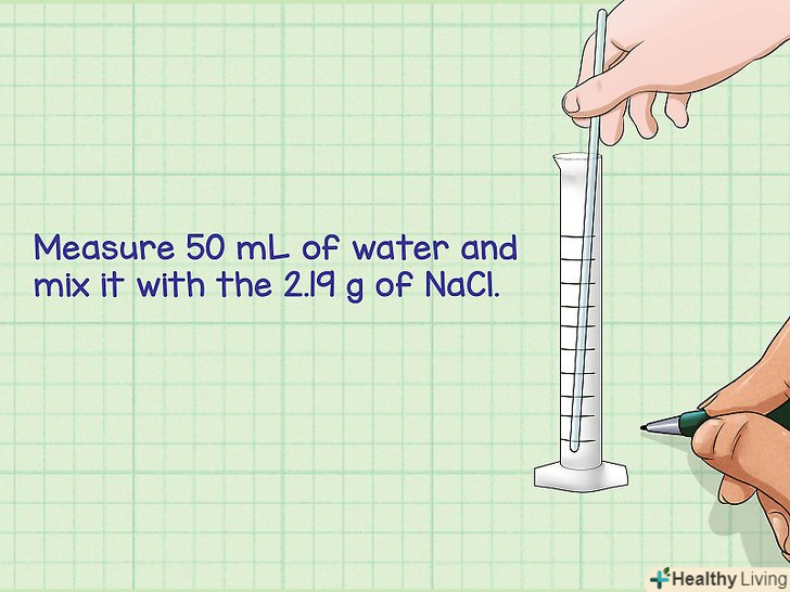 - Приклад: за допомогою мензурки (інструмент для вимірювання об'єму) відміряйте 50 мілілітрів води і розчиніть в ній 2,19 грама NaCl.