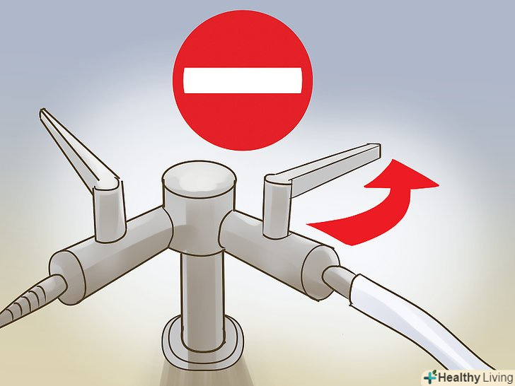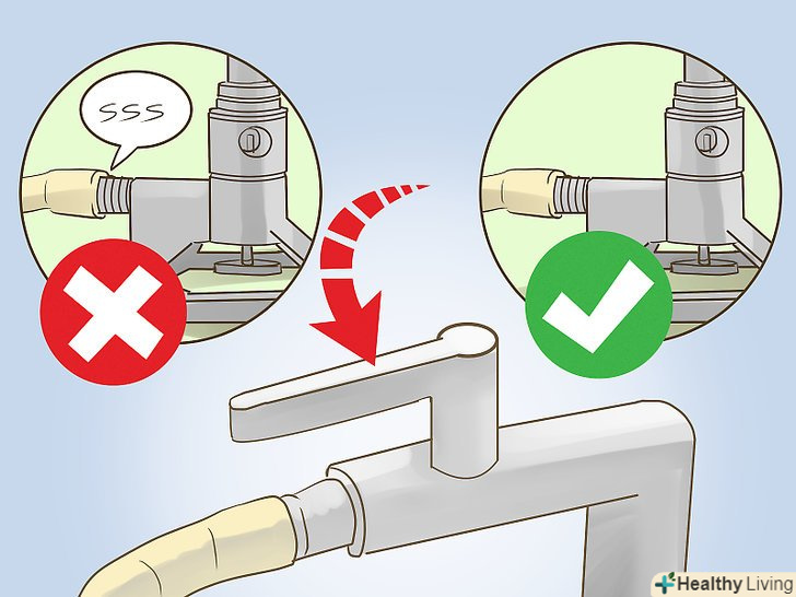 Вимкніть подачу газу з магістралі.поверніть вентиль так, щоб він був перпендикулярний газовій лінії і шлангу.[19]- Перш ніж покинути лабораторію, ще раз перевірте газову магістраль і переконайтеся, що ви перекрили газ.
