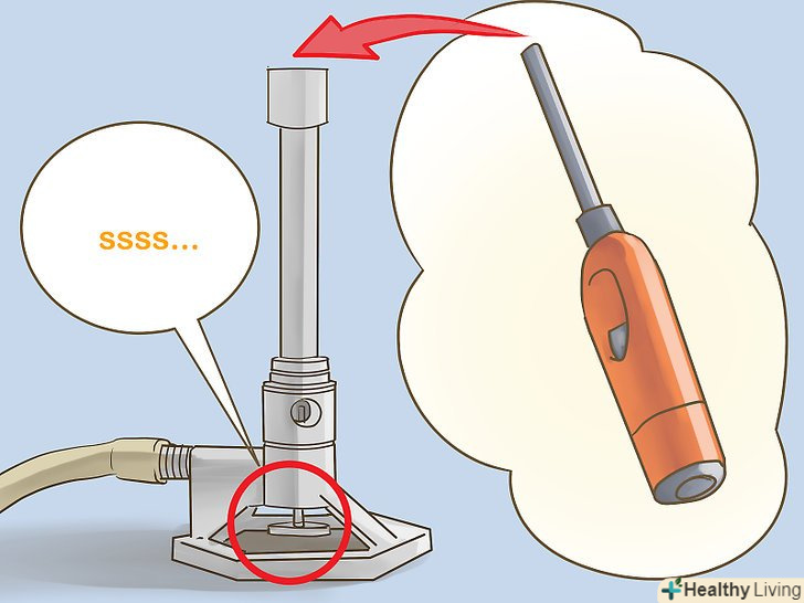 Відкрийте вентиль на газопроводі.поверніть ручку на магістралі подачі газу так, щоб вона розташовувалася паралельно вихідному і подає шлангів. При цьому ви не повинні почути шипіння виходить газу. Якщо пролунає шипіння, негайно перекрийте вентиль і закрийте голчастий клапан на пальнику.[10]- Після того як ви переконаєтеся, що голчастий клапан пальника закритий, спробуйте знову відкрити вентиль на магістралі подачі газу. Якщо знову пролунає шиплячий звук, проконсультуйтеся з керівником лабораторних робіт, щоб виявити несправність.