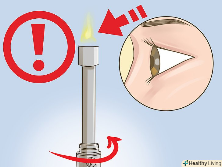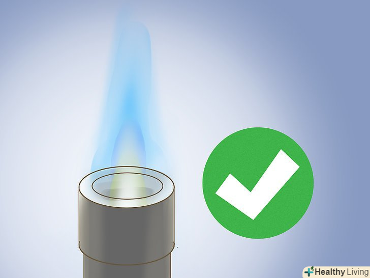 Для більшості завдань підходить середнє синє полум'я.як правило, досить створити синє полум'я середніх розмірів, хоча температура і колір полум'я залежать від стоїть перед вами завдання. Якщо ви сумніваєтеся, порадьтеся з керівником або загляньте в опис експерименту.[15]- Не забувайте закривати отвори подачі повітря, щоб знизити температуру полум'я, коли ви нічого не нагріваєте, і ніколи не залишайте палаючий пальник без нагляду.[16]